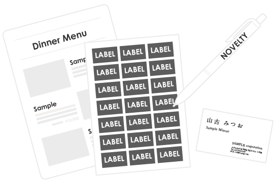 その他、ネット印刷のメニューにあるアイテム全般の入稿用データ作成(名刺、シール、ノベルティなど)